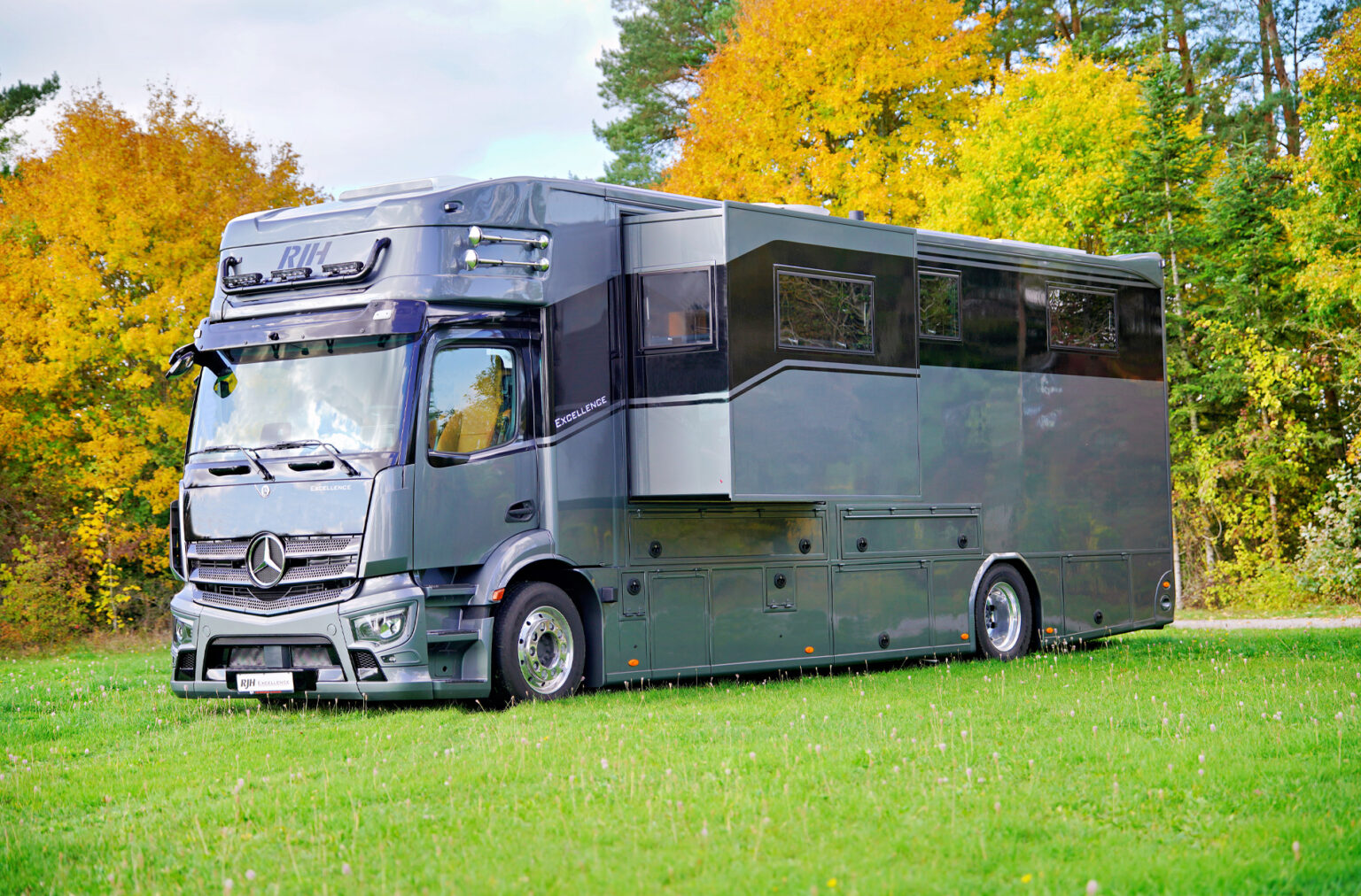 RJH-Reisemobile zeichnen sich durch ihren sportlichen und herstellernahen Look aus. Wir wollen dem individuellen Design der Fahrgestell-Hersteller (Mercedes-Benz, MAN, Volvo, IVECO usw.) ihren Raum lassen und verbinden dazu unser Wohnkabinen-Design harmonisch mit unserer Lackierung und Folierung.